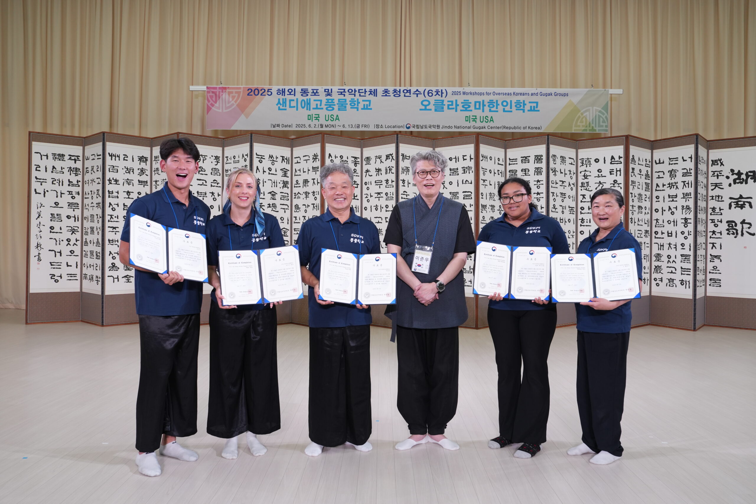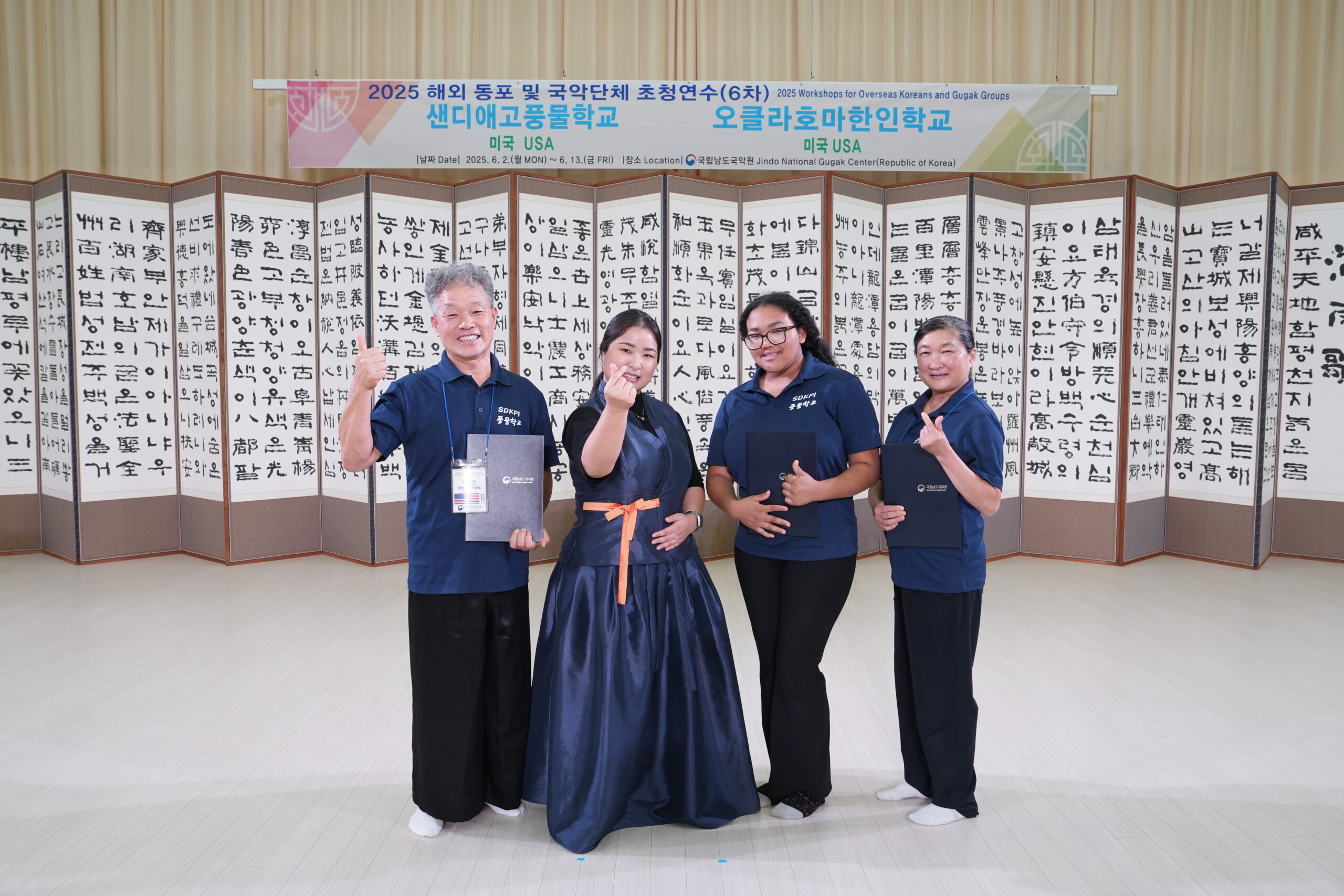 2025년 6/2(월)~6/13(금) 제6차 해외동포 국악단체 초청 연수 프로그램에 참여할 수 있도록 준비과정에서 애 많이 써주신 SD풍물학교 Hyosoon Park대표님, Ocean Park단장, Docean Park상쇠, Lety, Chaneol Choi, 물심양면으로 후원해주신 모든분들!