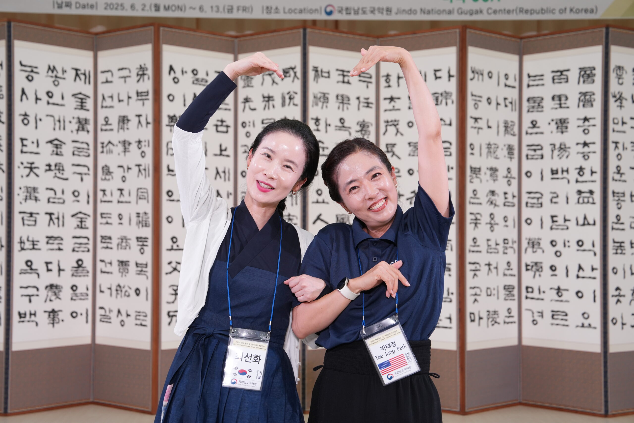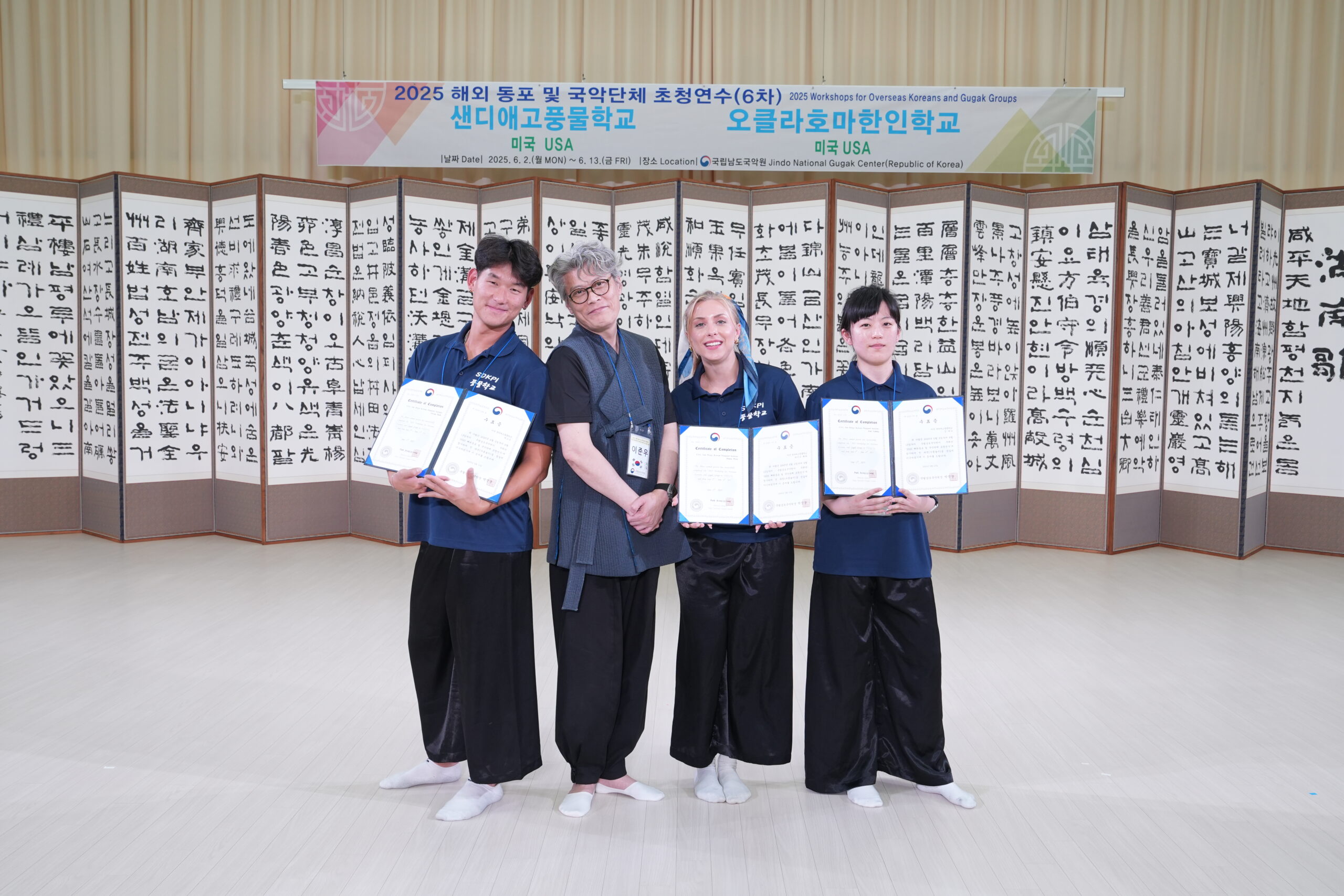 2025년 6월, 문화강국-대한민국! 경제대국-선진 대한민국!의 따뜻하고 자애로운 품격으로 해외동포 국악단체들을 지원하기위해 훌륭한 선생님들과 알찬 프로그램, 막강 대한민국의 국격을 느낄 수 있는 최상의 편의시설! 대한민국 문화관광부! 국립남도국악원 박정경원장님, 신성웅장악과장님, 정보영선생님, 이준우선생님, 문가영선생님, 최선화선생님 그리고 항상 맛나고 ‘정’이 넘쳐나는 고국의 인심을 전해주신 ‘식당&카페테리아’ 담당자님들께 머리숙여 마음깊은 감사의 말 씀 올립니다! 고맙습니다! 가르쳐주시고 전해주신 ‘문화강국-대한민국!’ ‘선진조국-대한민국!’ 잊지않고 더욱 열심히 배우고 익혀서 우리가 두발딛고 사는 샌디에고/엘에이, 캘리포니아, 미국에서 대한민국의 품격을 알리는모범시민이 되도록하겠습니다. 잊지않겠습니다! 고맙습니다!